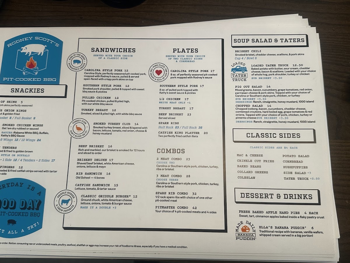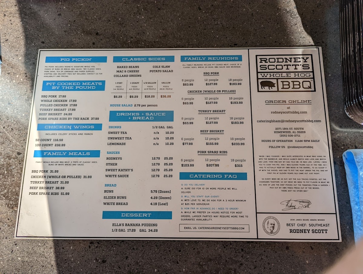 At Rodney Scott's BBQ - Homewood, the menu is a celebration of authentic Southern barbecue, where each dish tells a story of flavor and tradition. Nestled in Homewood, Alabama, this culinary gem offers a variety of hearty options that will satisfy any craving. Start with the Pickle Pit Salad, which can be enhanced with your choice of succulent meats like brisket or whole hog. For those yearning for a classic BBQ experience, the 3-meat platter is a crowd favorite, featuring tender cuts that showcase the skillful smoking process.